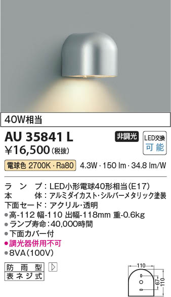 Koizumi コイズミ照明 LED防雨型ブラケット AU35841L