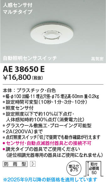 Koizumi コイズミ照明 自動照明センサスイッチ AE38650E