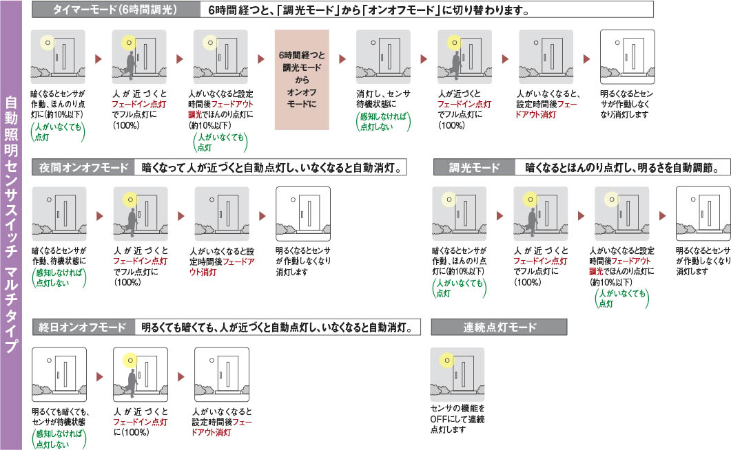 ●点灯照度スイッチ「切」で昼間でも動作確認が行えます
