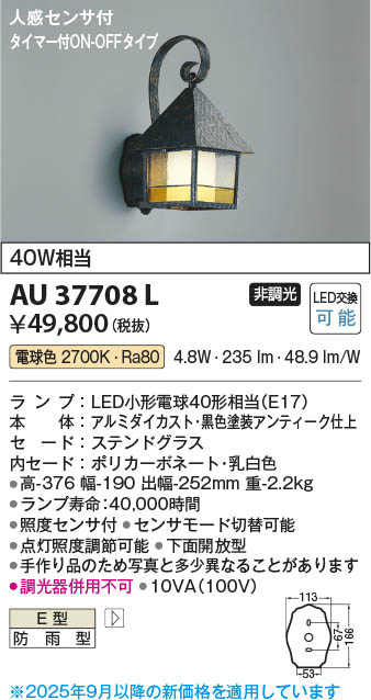 Koizumi コイズミ照明 LED防雨型ブラケット AU37708L