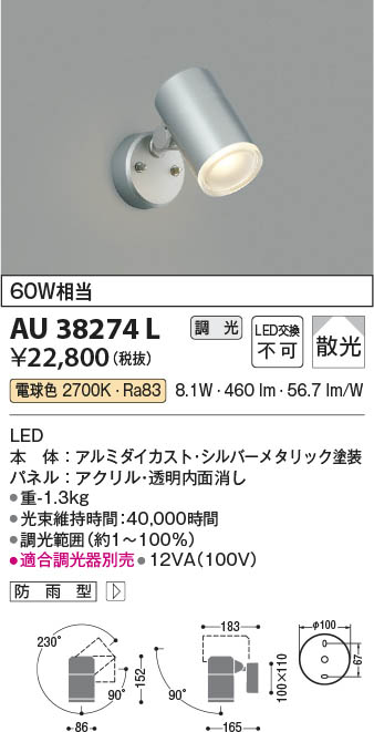 Koizumi コイズミ照明 LEDエクステリアスポットライト AU38274L