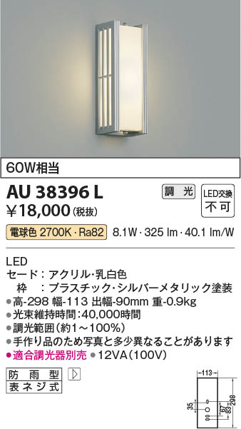 Koizumi コイズミ照明 LED防雨型ブラケット AU38396L