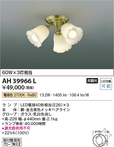 Koizumi コイズミ照明 LEDシーリング AH39966L | 商品情報 | LED照明器具・照明機器の激安通信販売・格安通販・業務用販売・見積もり販売 照明倉庫 -LIGHTING DEPOT-