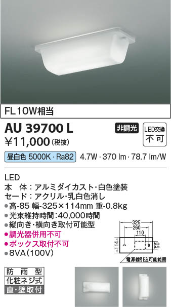 Koizumi コイズミ照明 LED防雨型ブラケット AU39700L
