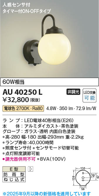 Koizumi コイズミ照明 LED防雨型ブラケット AU40250L
