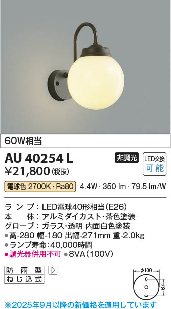 Koizumi コイズミ照明 LED防雨型ブラケット AU40254L