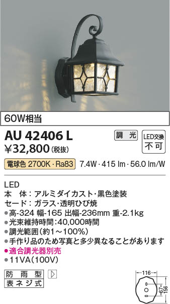 Koizumi コイズミ照明 LED防雨型ブラケット AU42406L