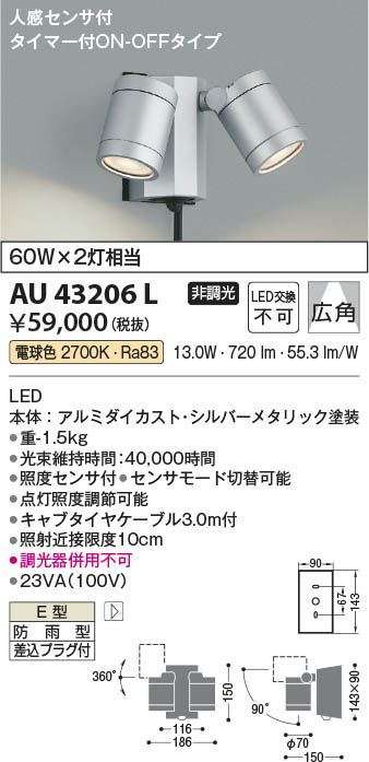 Koizumi コイズミ照明 LEDエクステリアスポットライト AU43206L