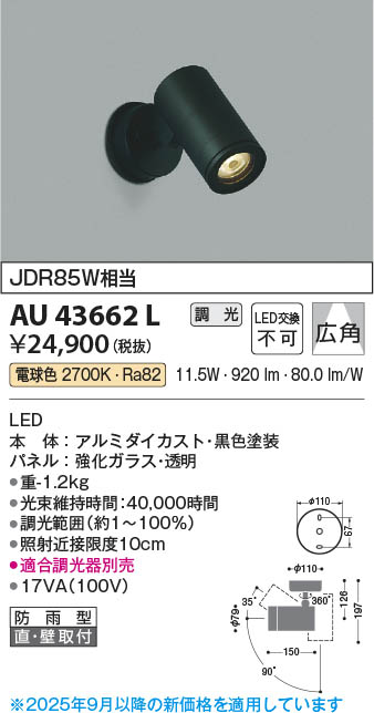 Koizumi コイズミ照明 LEDエクステリアスポットライト AU43662L