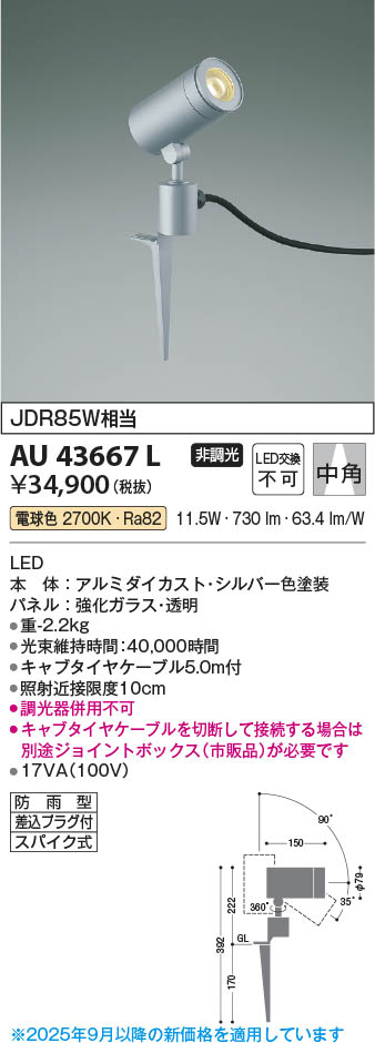 Koizumi コイズミ照明 LEDエクステリアスパイクスポット AU43667L