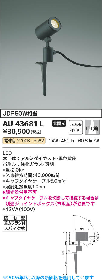 Koizumi コイズミ照明 LEDエクステリアスパイクスポット AU43681L