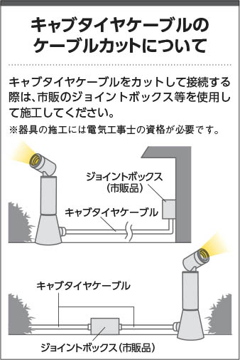 ●キャブタイヤケーブルを切断して接続する場合は別途ジョイントボックス(市販品)が必要です
