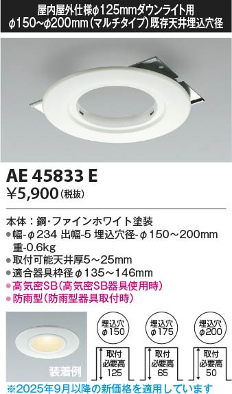 ●幅-φ234 出幅-5 埋込穴径-φ150〜200mm 重-0.6kg