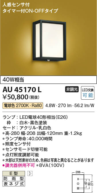 Koizumi コイズミ照明 LED防雨型ブラケット AU45170L