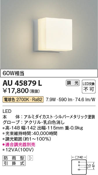 Koizumi コイズミ照明 LED防雨型ブラケット AU45879L