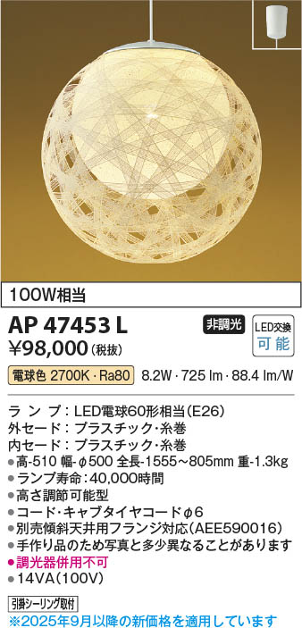 Koizumi コイズミ照明 LED和風ペンダント AP47453L