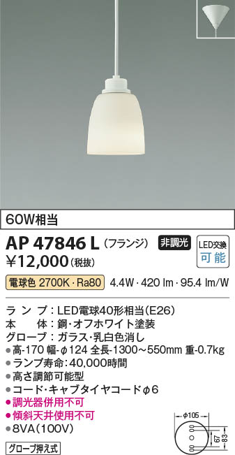 Koizumi コイズミ照明 LEDペンダント AP47846L