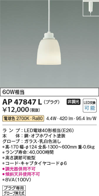 Koizumi コイズミ照明 LEDペンダント AP47847L