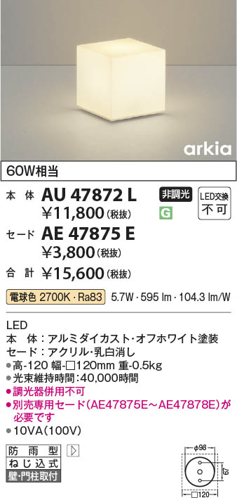 ●別売専用セード(AE47875E〜AE47878E)が必要です