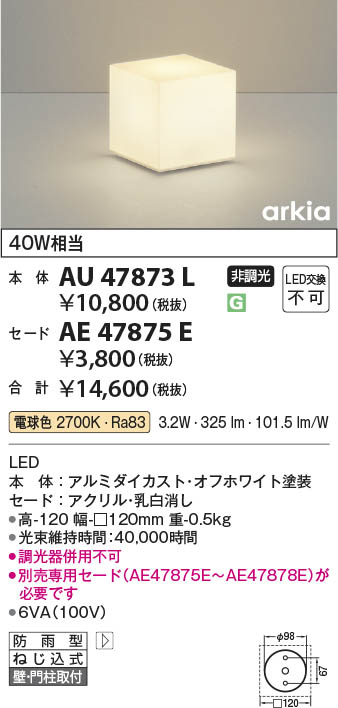 ●別売専用セード(AE47875E〜AE47878E)が必要です