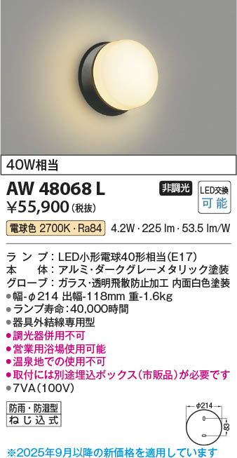 Koizumi コイズミ照明 LED防雨防湿型ブラケット AW48068L