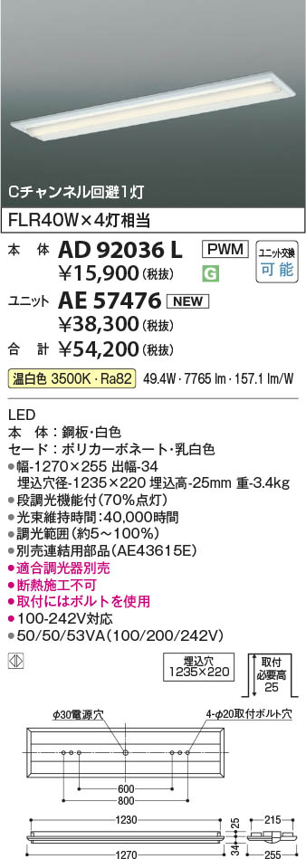 ●埋込穴径-1235×220 埋込高-25mm