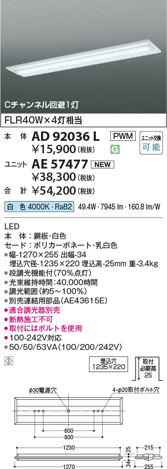 Koizumi コイズミ照明 LEDベースライト 本体 AD92036L