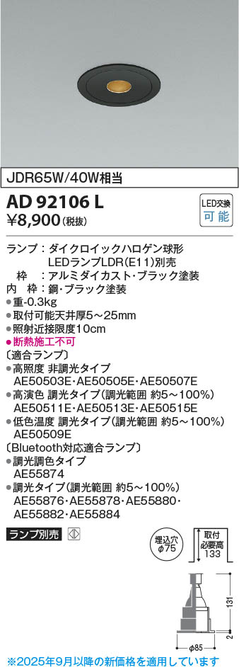 Koizumi コイズミ照明 LEDダウンライト AD92106L
