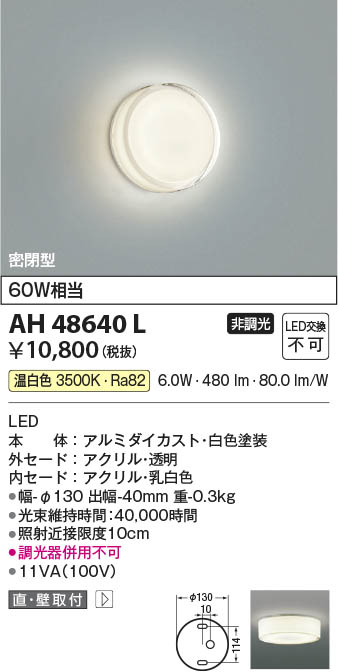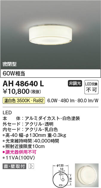 Koizumi コイズミ照明 LED小型シーリング AH48640L | 商品情報 | LED照明器具・照明機器の激安通信販売・格安通販・業務用販売・見積もり販売 照明倉庫 -LIGHTING DEPOT-