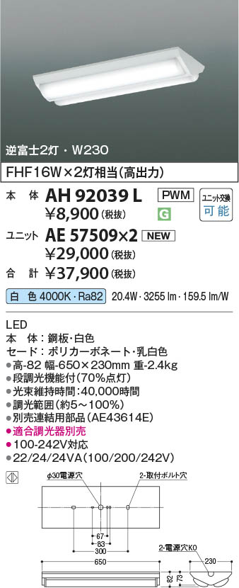 Koizumi コイズミ照明 LEDベースライト 本体 AH92039L