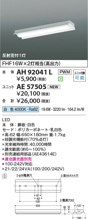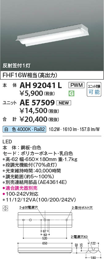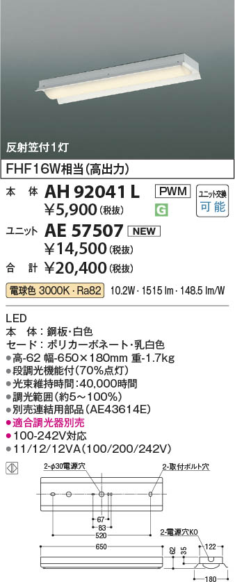 Koizumi コイズミ照明 LEDベースライト 本体 AH92041L