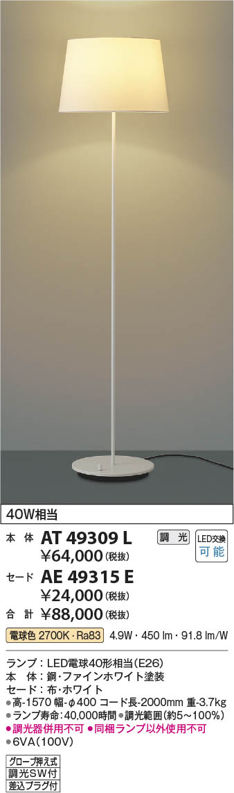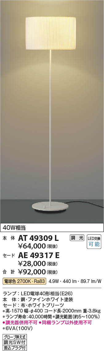 Koizumi コイズミ照明 LEDスタンド 本体 AT49309L
