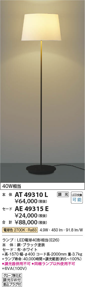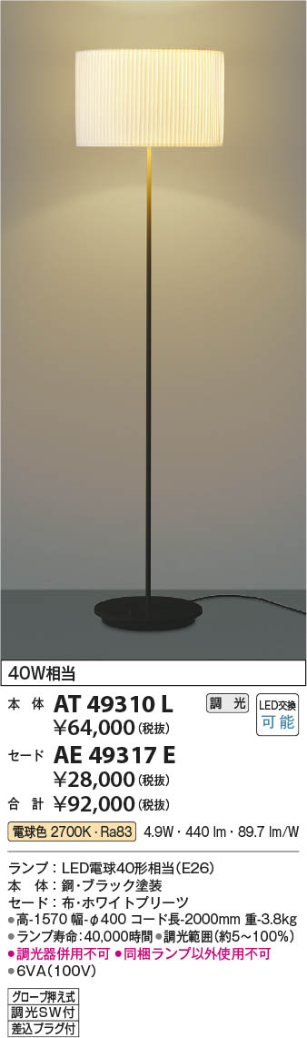 Koizumi コイズミ照明 LEDスタンド 本体 AT49310L