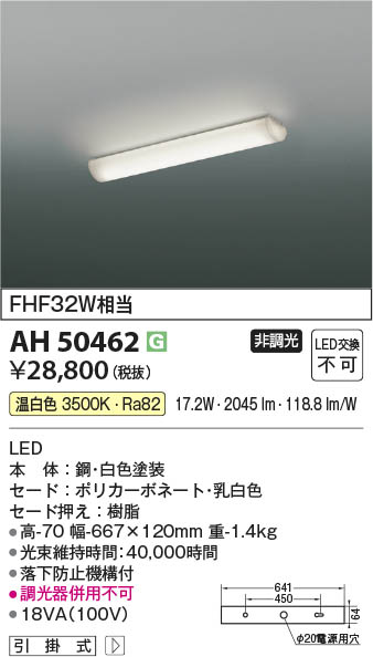 Koizumi コイズミ照明 LEDキッチンライト AH50462 | 商品情報 | LED照明器具・照明機器の激安通信販売・格安通販・業務用販売・見積もり販売 照明倉庫 -LIGHTING DEPOT-