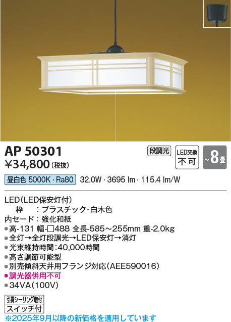 Koizumi コイズミ照明 LED和風ペンダント AP50301