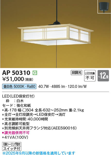 Koizumi コイズミ照明 LED和風ペンダント AP50310