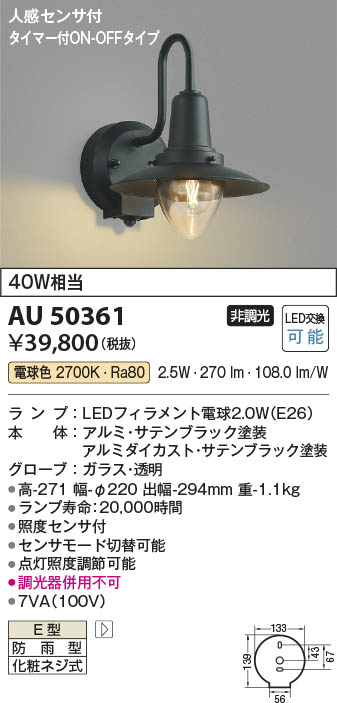 Koizumi コイズミ照明 LED防雨型ブラケット AU50361