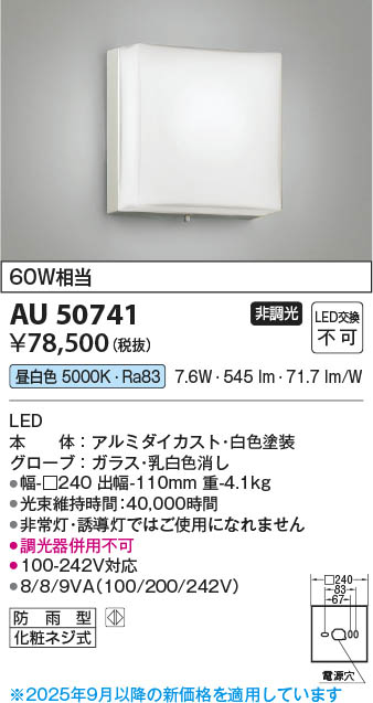 Koizumi コイズミ照明 LED防雨型ブラケット AU50741