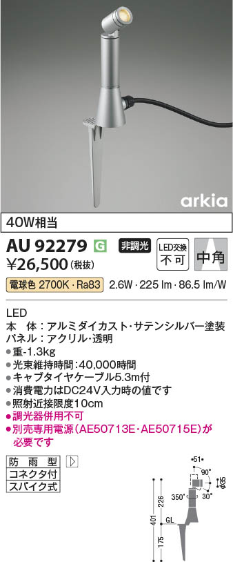 Koizumi コイズミ照明 LED DC24Vエクステリアスパイクスポット AU92279