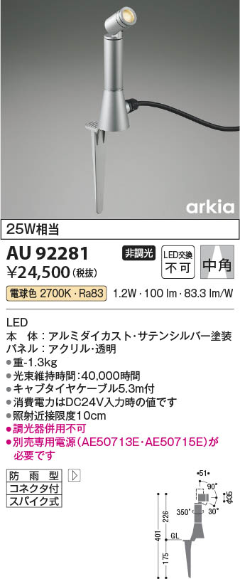 Koizumi コイズミ照明 LED DC24Vエクステリアスパイクスポット AU92281