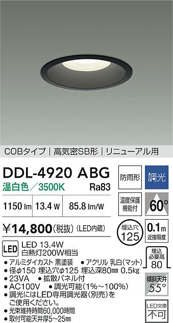 DAIKO 大光電機 ダウンライト(軒下兼用) DDL-4920ABG