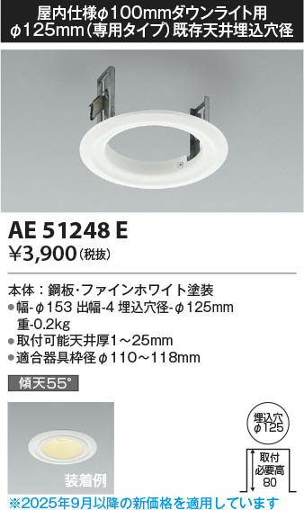 ●幅-φ153 出幅-4 埋込穴径-φ125mm 重-0.2kg