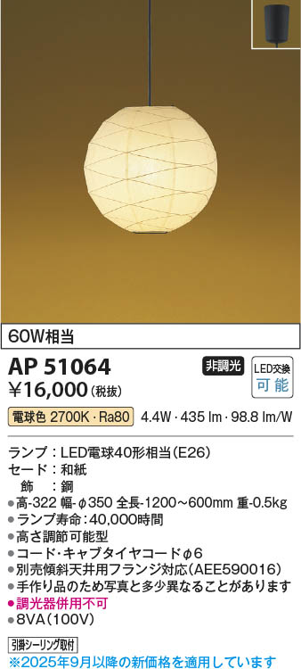 Koizumi コイズミ照明 LED和風ペンダント AP51064