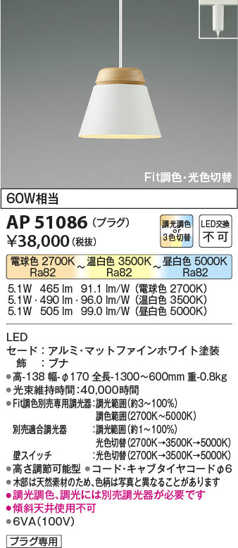 Koizumi コイズミ照明 LEDペンダント AP51086