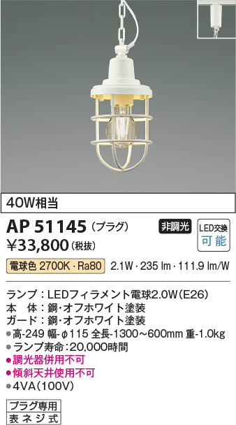 Koizumi コイズミ照明 LEDペンダント AP51145