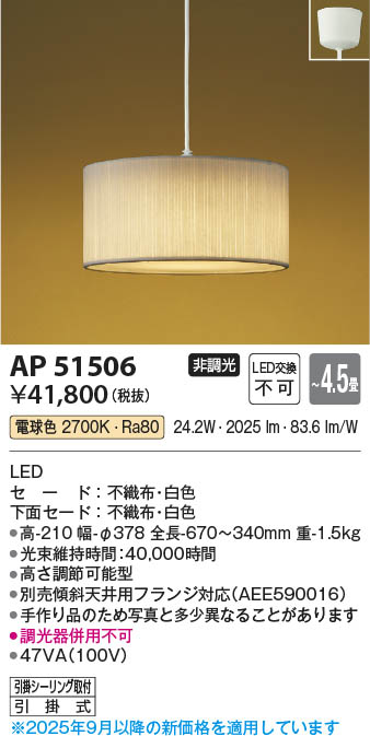 Koizumi コイズミ照明 LED和風ペンダント AP51506