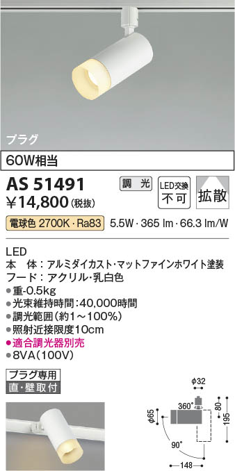 Koizumi コイズミ照明 LEDスポットライト AS51491