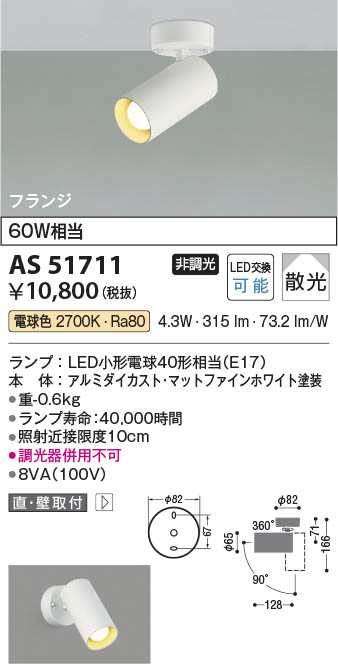Koizumi コイズミ照明 LEDスポットライト AS51711