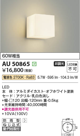 Koizumi コイズミ照明 LED防雨型ブラケット AU50865
