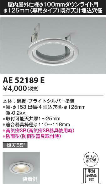 ●幅-φ153 出幅-4 埋込穴径-φ125mm 重-0.2kg